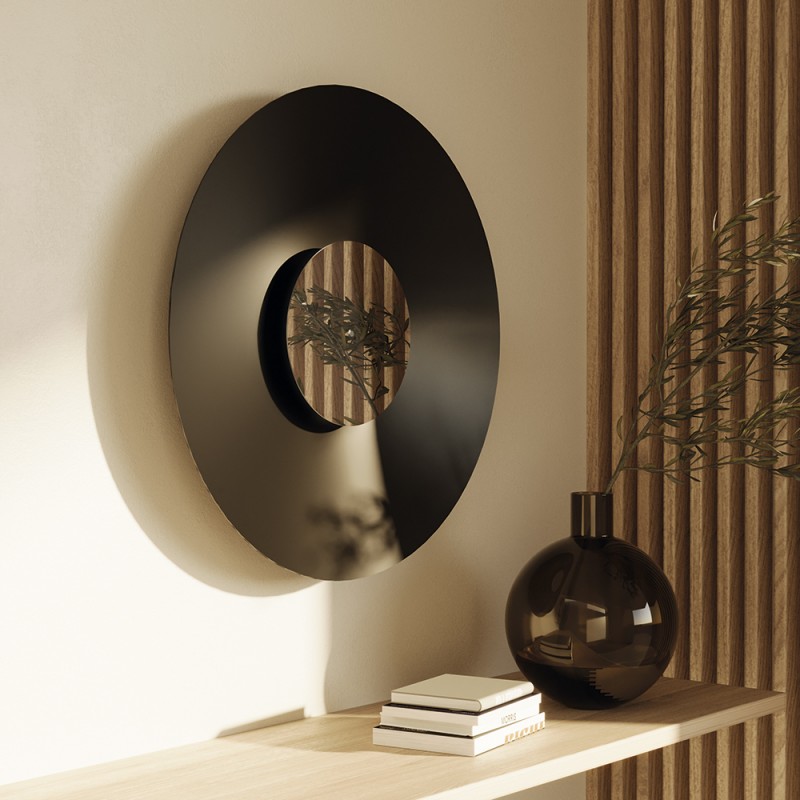 Aplique circular de metal en acabado negro mate. Disponible en dos medidas: Ø25 o 40 cm.