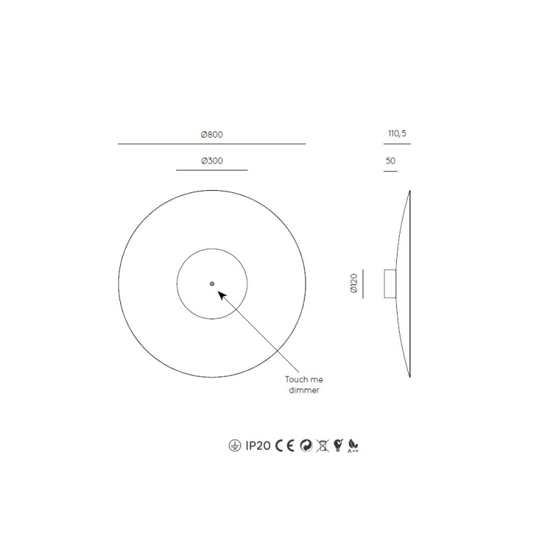 Aplique redondo de diseño minimalista en acero negro o blanco mate. Con tira led.