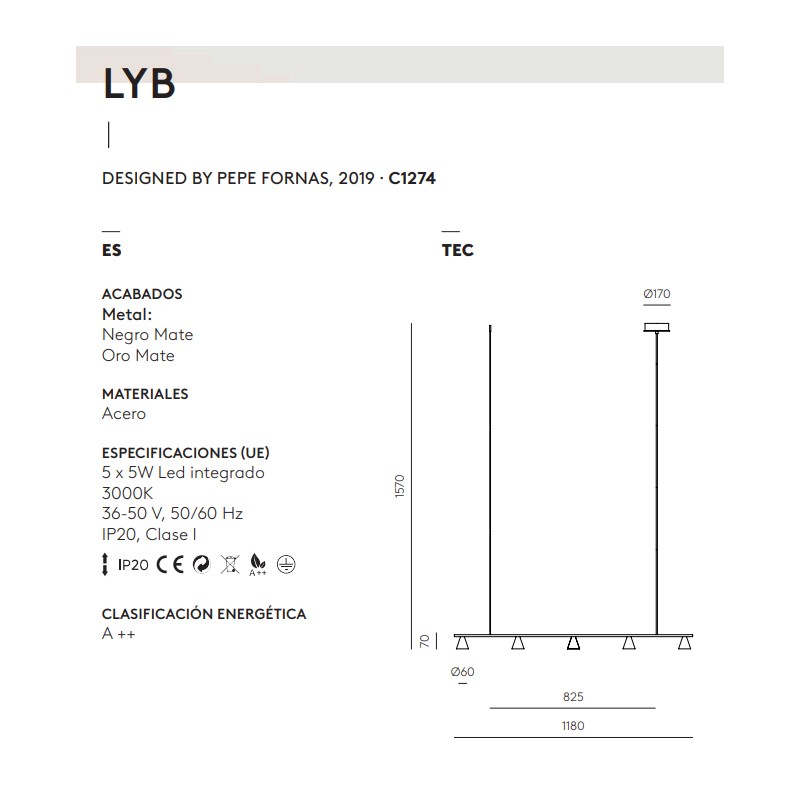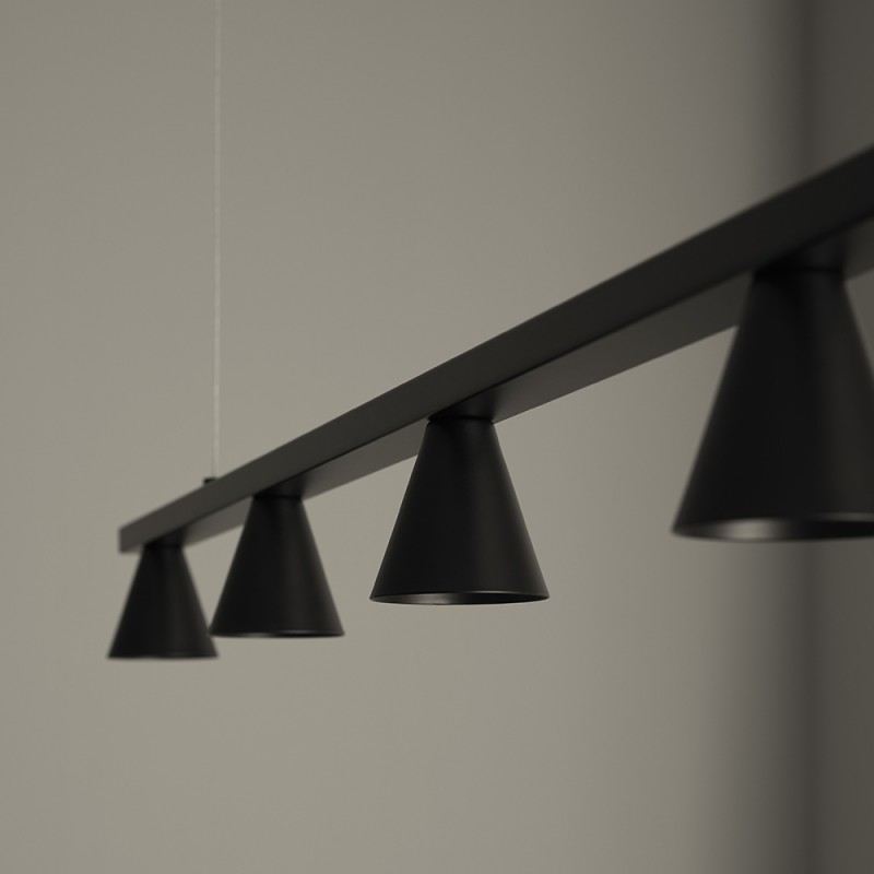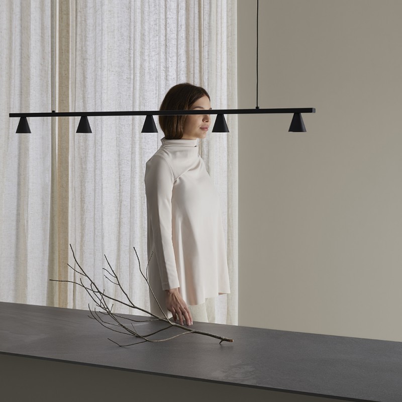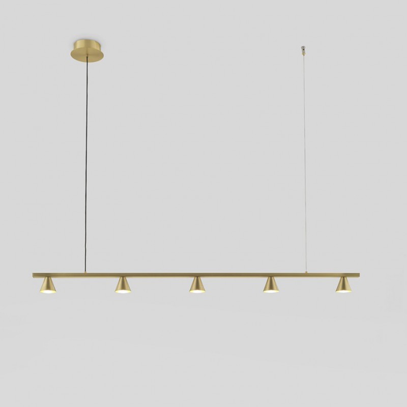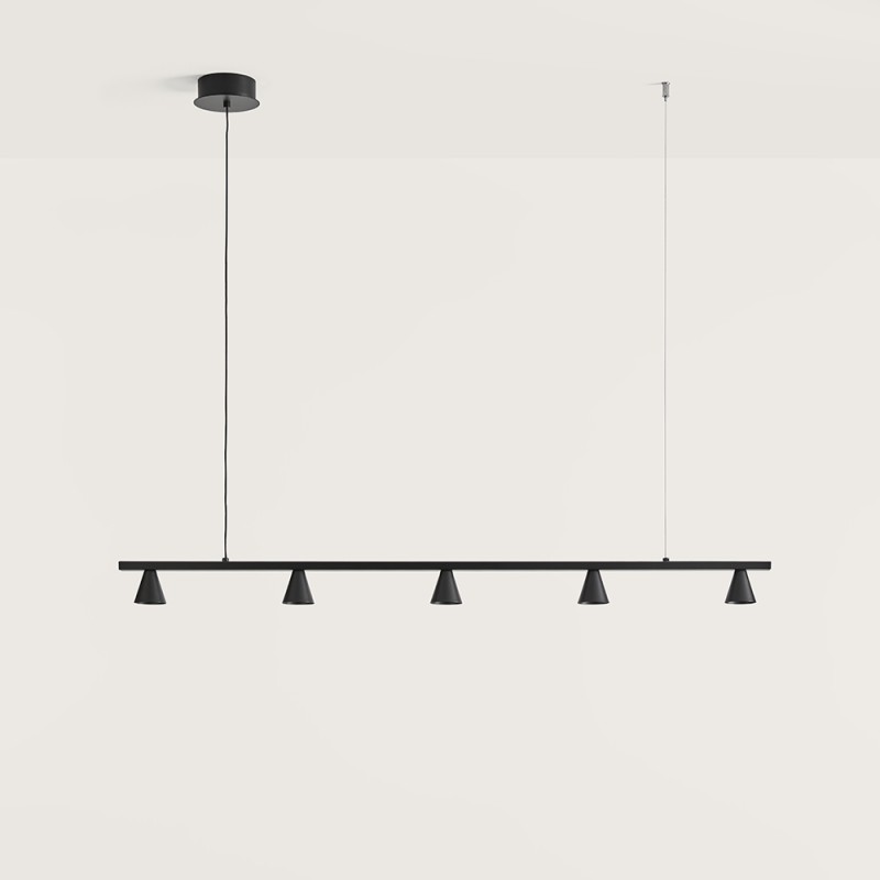 Diseño minimalista de líneas puras con cinco focos.