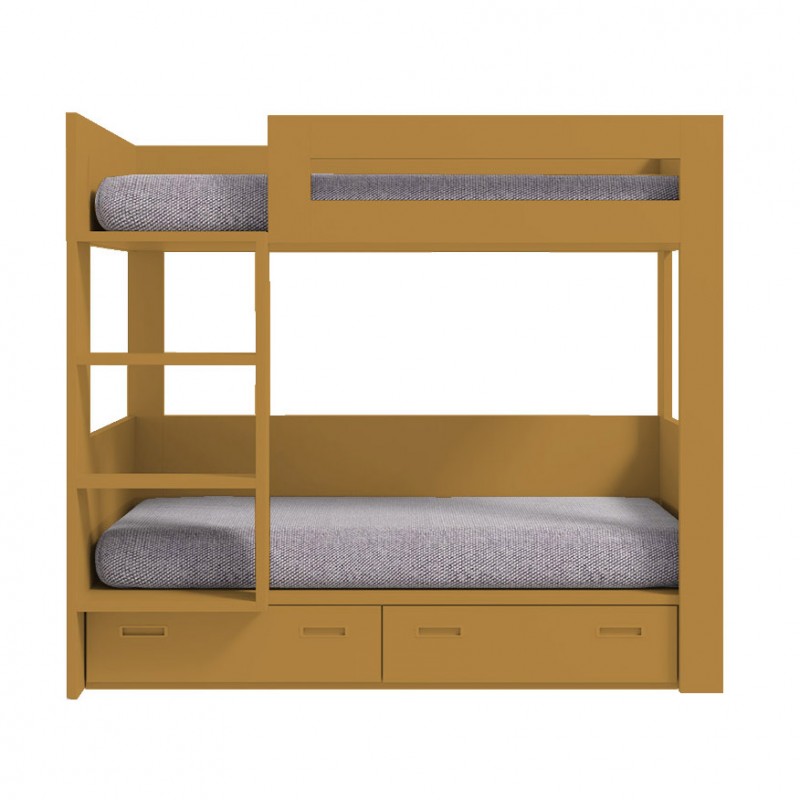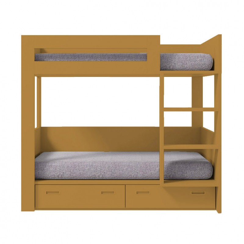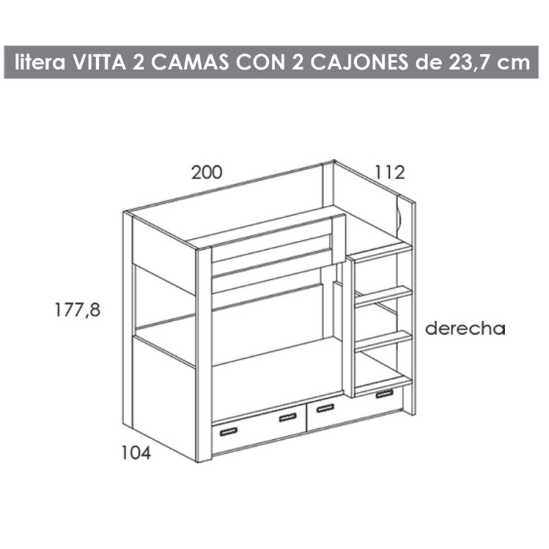 Litera con dos camas para colchón de 90x190cm y dos cajones inferiores.