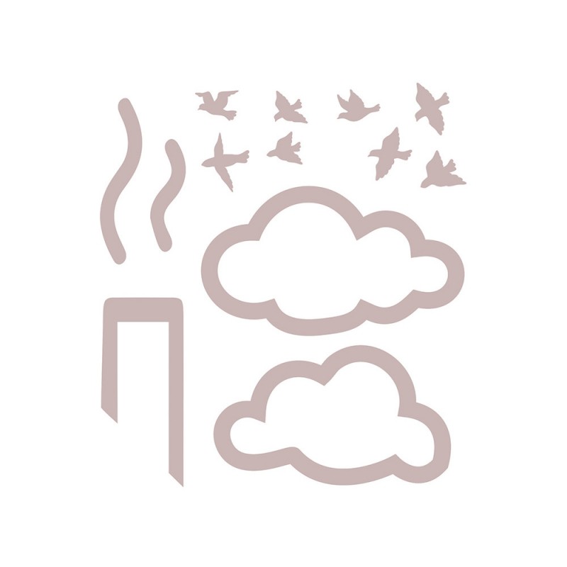 El sticker ROOF aporta un toque diferente a la habitación infantil de vuestro hogar. Diferentes stickers: una chimenea, pajaritos y también nubes, que podrás poner según tu gusto y necesidades. Puedes ver ejemplos de las habitaciones del catálogo BAMBOO.